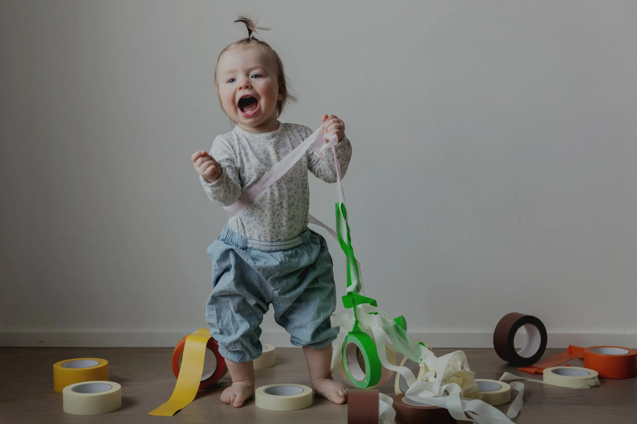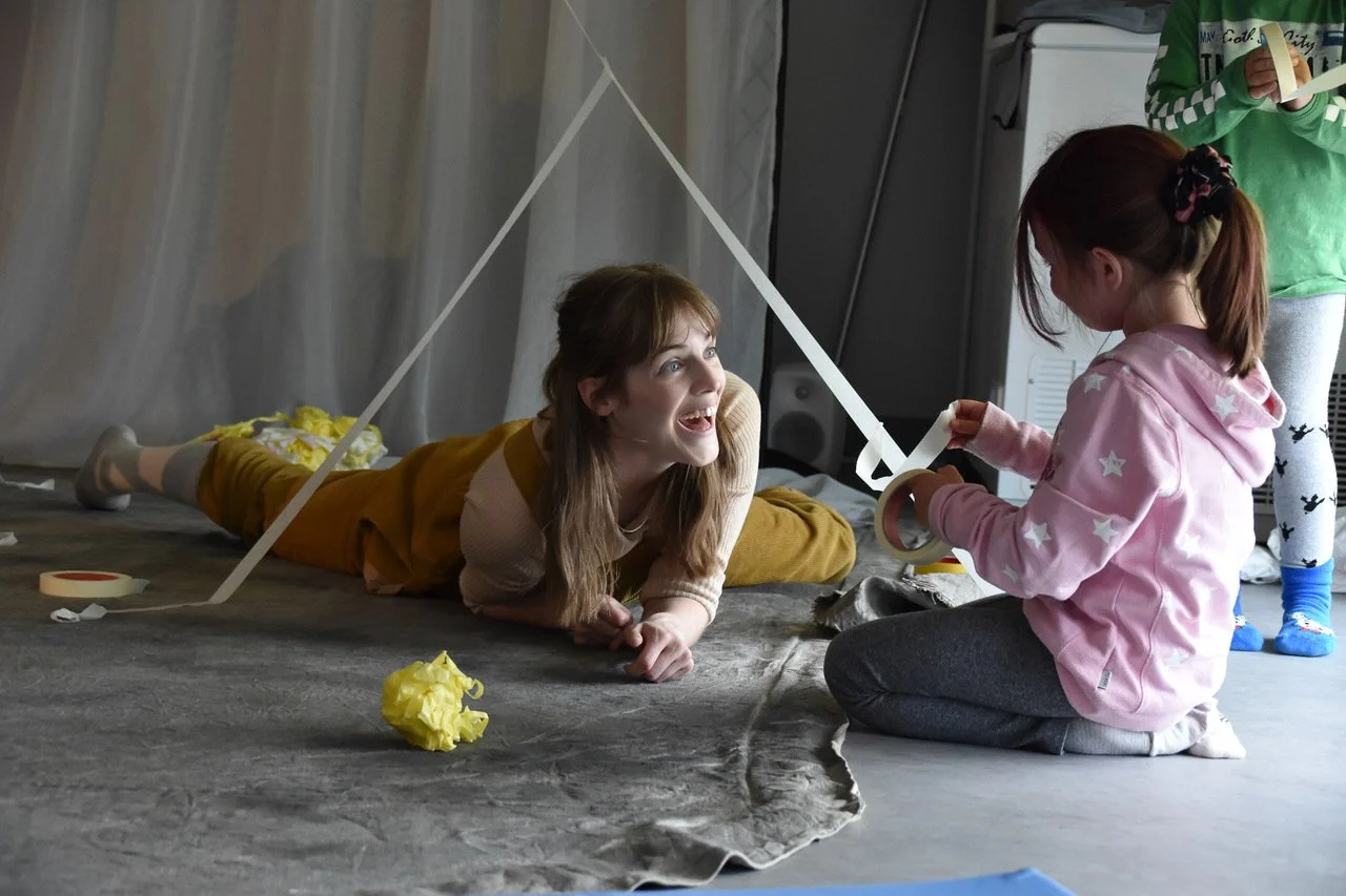 Ritsj er en forestilling med teip. Ruller med teip i mange farger som klistres, trilles, stables og kan dras ut til lange tråder. Hvilke lyder lager teipen? Hvordan kjennes den ut mot huden? Ritsj, og den rives i stykker.
